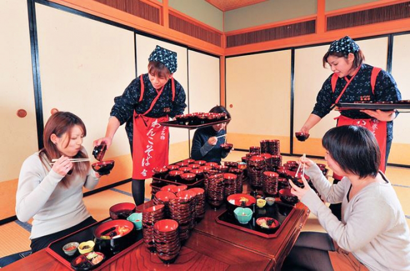 わんこそばは、一口程度で食べられるそばを小分けしてお椀に入れ、それを食べ終えるたびに、お椀にそばを入れ続け、客が蓋を閉めるまで続けられる郷土料理です。