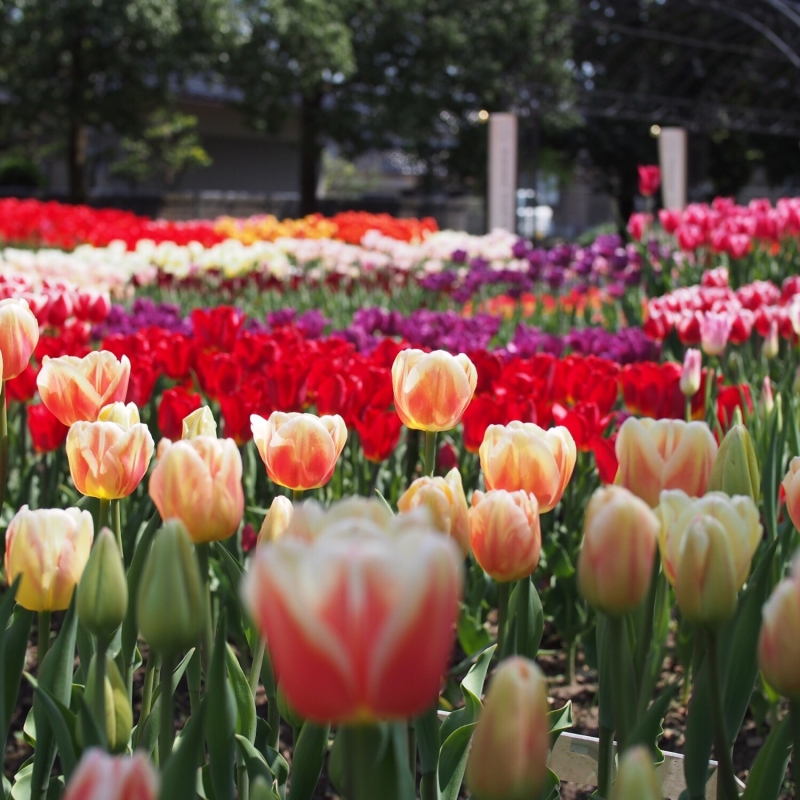 その年によって植えられる品種数・株数は異なりますが、2020年は284品種約25万級球ものチューリップが植えられたそう。品種ごとのお花の違いにも注目して鑑賞してみてくださいね。