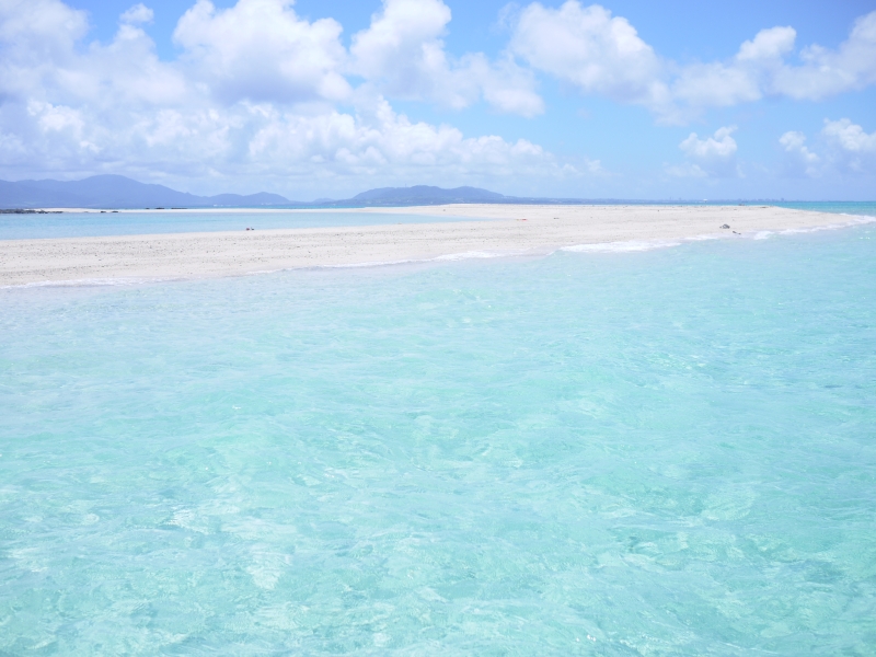 石垣島から西に約10kmの位置にある“幻の島”。正確には「浜島」と言います。満潮時は海の中に沈み、干潮になるにつれて現れる砂だけの無人島、だから “幻の島” と呼ばれるようになったのですね。とは言っても、完全に海の中に沈むのではなく、常に海上に出ている岩場があり、日本地図にも「浜島」とちゃんと表示されています。