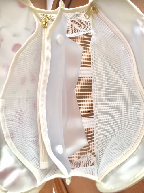 スパバッグの特徴として、底や側面がメッシュになっているので水はけが良いです。とはいえ、湯上り後は、館内の床や自分の他の持ち物を濡らさないように袋に入れ、帰宅したら袋から取り出して乾燥させましょう。