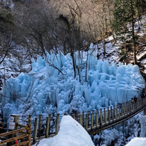 最も美しいつららが見られる時期には「大滝氷まつり」が開催され、「三十槌の氷柱」にて夜間のライトアップを実施する期間があります。奥秩父ならではの厳しい冬の環境がつくりだす自然美とライトアップされた幻想的な姿は、この時期にしか見れない貴重な光景です。