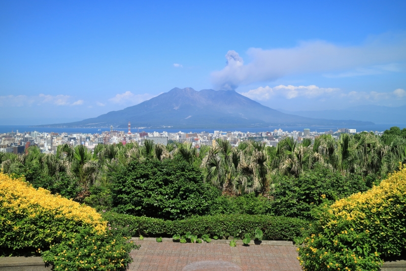 パームツリーやフェニックスなど亜熱帯樹に囲まれた、海抜100mの丘の上にある美術館。錦江湾にそびえる雄大な桜島や鹿児島市街地を一望する景色が楽しめる絶景美術館です。とくに2階にある喫茶室では、桜島を眺めながらゆっくりとカフェタイムを楽しめます。