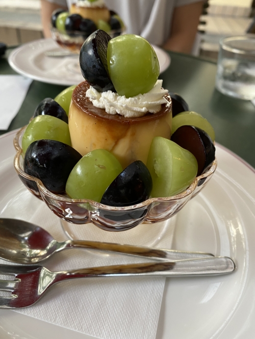 こちらの売りは季節のフルーツを使ったプリンアラモード。硬めのプリンに旬の果物がたっぷり!写真映えも狙える一品です。