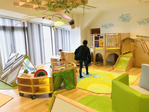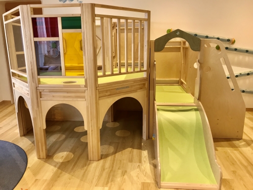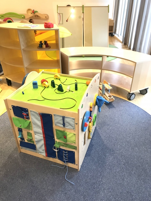 2歳未満児限定のエリアです。ドイツのHABA社の木製の玩具やはらぺこあおむしの人形、その他壁際にも色々な仕掛けがあり、小さい子でも飽きません。