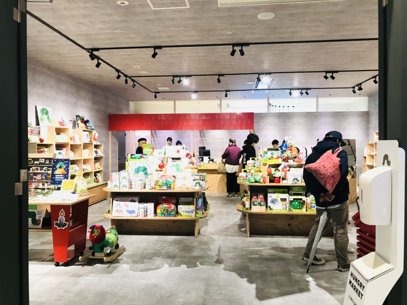 入場料不要のショップ「Hungry Market」も併設されており、絵本はもちろん、知育玩具やお菓子、Tシャツやトレーナーなどを扱っています。