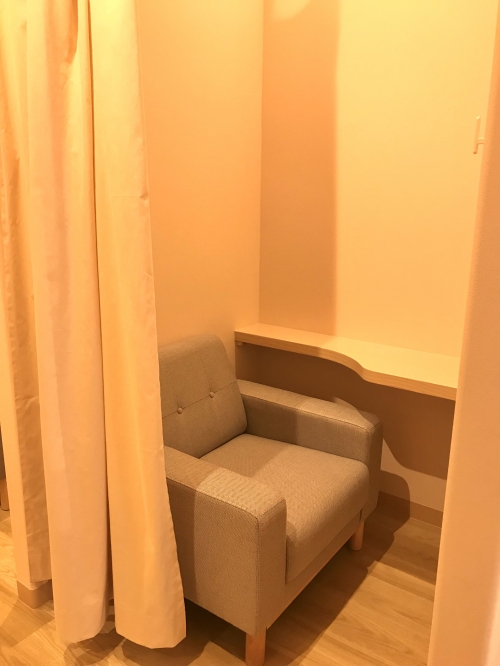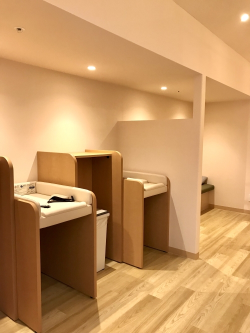 授乳室(個室2室、座りやすそうなソファーがあります)、おむつ台(2台、オムツのゴミ箱もあり)、ウォーターサーバー(お湯も出ます、隣には水道もあるのでミルクを冷ますこともできます)もあります。