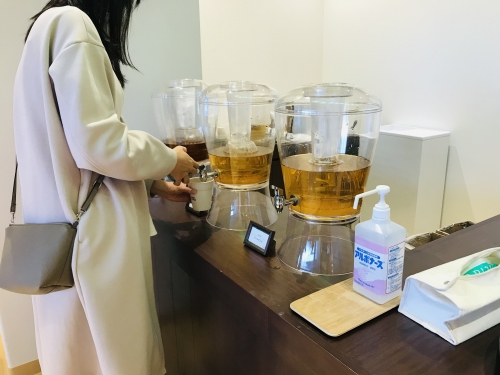 丸山珈琲やルピシアの紅茶がフリードリンクで楽しめます。フレーバー麦茶(筆者が訪れた時はりんご麦茶でした)もあるので、小さな子も安心して飲むことができます。