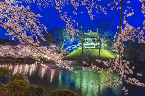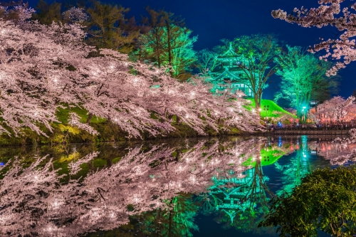 日本三大夜桜のひとつ!幻想的に浮かぶ城と桜並木にうっとり
