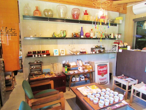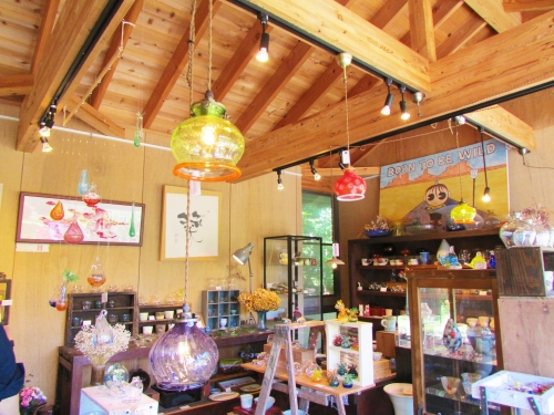 まずは橋立から出発です。ガラス工房と各種工芸・アート作品のセレクトショップ「カレット」はちょっと見つけにくい場所にあります。橋立自然公園の中心を抜ける道を進み、黄色い看板を探してください。