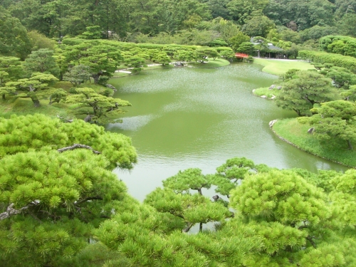 歴代の高松藩主が修築を重ねながら作り上げた「大名庭園」で、6つの池と13の築山が配置されており、緑美しい松林や、季節ごとの花、茶室でのお茶などを楽しむことが出来ます。