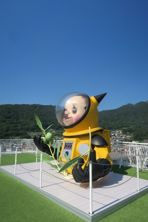 屋上展望デッキにあるヤノベケンジ氏の代表作トらやんの巨大なオブジェも見逃せません。