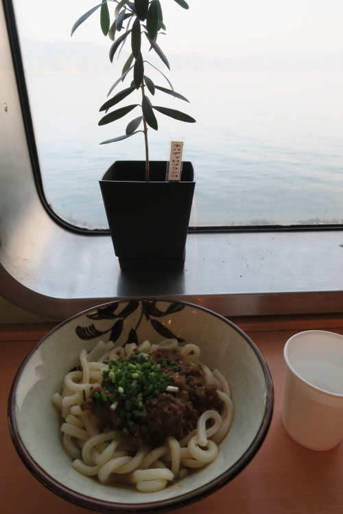 その他、高松~小豆島~神戸を結ぶジャンボフェリーでは、売店であたたかい食事を味わうことができます。小豆島のオリーブ牛100%のカレーうどん(税込630円)がオススメです。