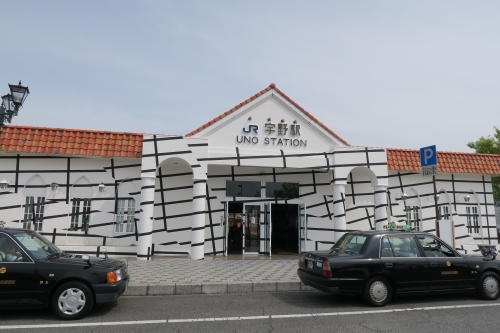岡山駅から人気の島「直島」や「豊島」へのフェリーが運航されている宇野港までを結ぶJR宇野線では、「JR宇野みなと線アートプロジェクト」として、一部の駅舎がおしゃれなアート作品になっているのも見逃せません。運航日が合えば観光列車La Malle de Bois(ラ・マル・ド・ボァ)に乗ってみるのもおすすめです。