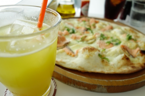 そんな絶景を見ながら頂けるのが、地元の食材を使った本格イタリアン。あおさとサーモンのピッツァや、奄美の島タコや車海老を使った海人(うみんちゅ)のトマトソースパスタなど、オリジナルメニューも豊富です。変わったところでは、奄美大島の郷土料理・鶏飯の具を生地に載せて焼き上げた鶏飯ピッツァなどもあります。さらに、自社栽培のサトウキビを生搾りしているさとうきびジュースもあるので、試してみたい方はぜひ!