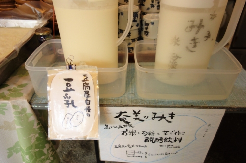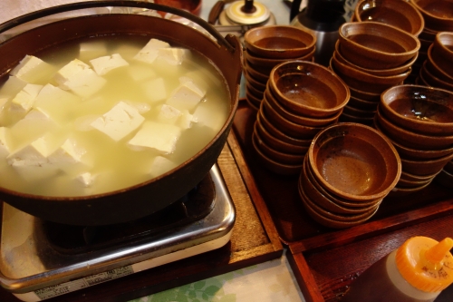 なんと汲み上げ湯豆腐に、枝豆豆腐(季節により変更)が食べ放題、豆乳と発酵飲料ミキが飲み放題なのです。気を付けないと、料理が来る前に満腹になりそうな状態です。
