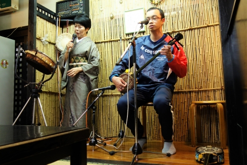 女将さんは、次の世代に島唄を継承するため、島唄教室も開いているとのこと。一曲ごとに、唄の解説を入れながら、島唄を披露してくれます。この日は、愛弟子で全国大会にも出ている男子生徒が、奄美三味線の生演奏と美声を聞かせてくれました。