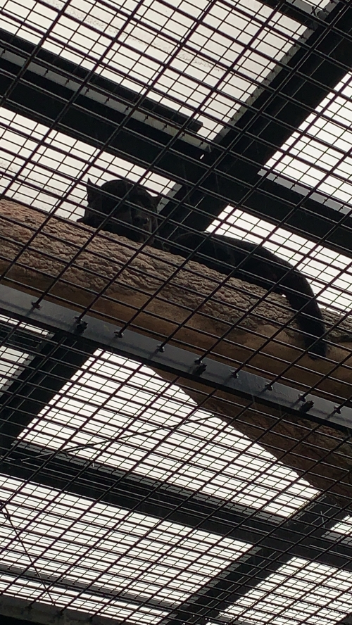 例えば、写真右の黒豹は、通路を挟んで両側に檻があり、頭上の橋で行き来できるように展示されています(オシッコ注意の看板があります笑)。運が良ければ、橋の上でお昼寝する、まるで猫のような黒豹さんの姿を見ることが出来るんです!