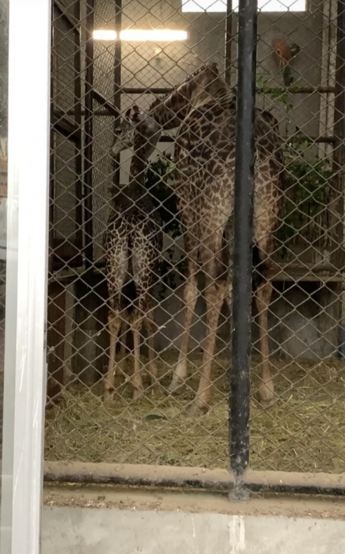 写真:トラベルライター飼育舎の一部も見ることが出来ます。キリンの親子の仲睦まじい姿にほっこり♪