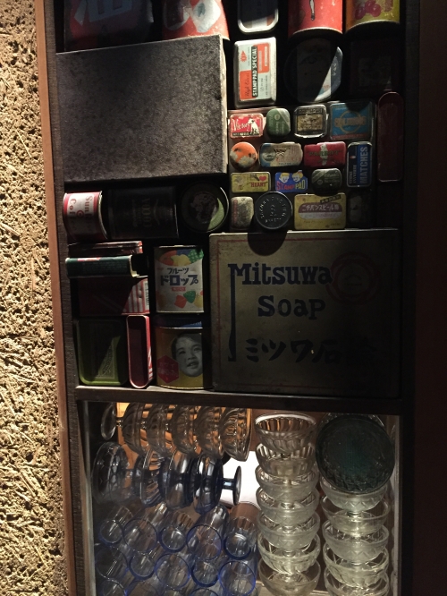 壁の装飾や仕切りは、すべてレトロ調で統一されています。駄菓子屋にあるような昔のドロップ缶や飴、食器やグラス、道具等、どれもこだわりが見られます。きっと料理が運ばれてくるまでの間も、目で見て楽しめることでしょう。