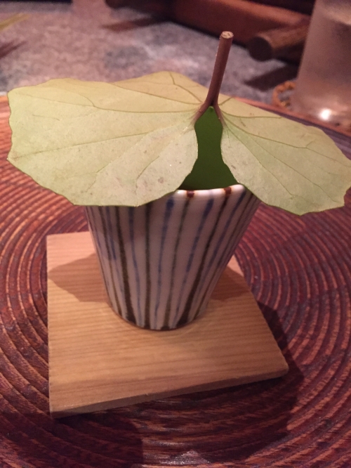 自然の葉を蓋として使っていたり、竹の上に貝を敷き、その上にお刺身を盛るなど、目で見て楽しめる料理が非常に多かったです。