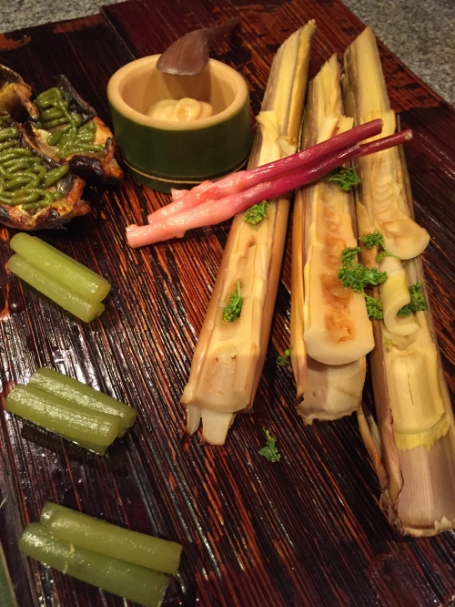 写真:藍ai【夕食のお料理】大名筍姿焼き。シンプルだけれども、色合いや器の素材など、バランスが絶妙です。