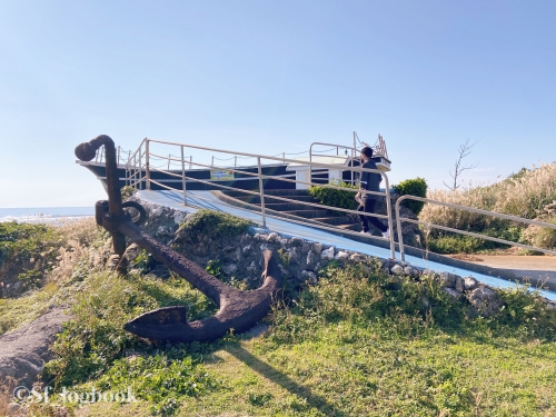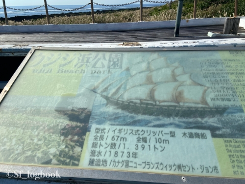 1890年にカナダ帆船「リージCトゥループ号」が座礁した際、島の人の救助により、無事にカナダに帰国できたことから、お礼に送られた船のモニュメントが設置されています。