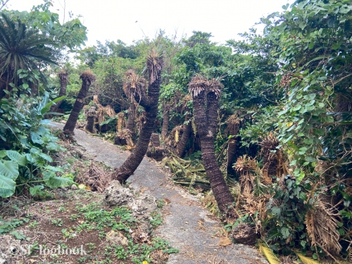 南国らしい植物の一つと言えば、ソテツ。自生ソテツの群生地で、遊歩道が600m続いています。周囲に駐車場がなく、出口と入り口が異なるので注意です。