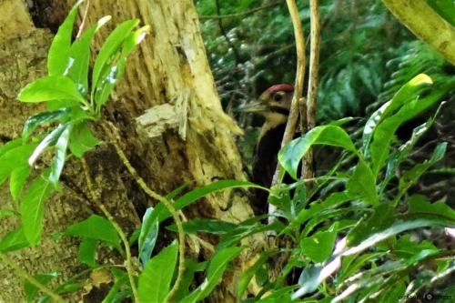 「黒潮の森マングローブパーク」には、上空からマングローブの森を見渡せる展望台があるのですが、周辺では、鳥のさえずりがたくさん聞こえてきます。静かに行動していると、貴重な鳥に会えるかもしれません。筆者が見つけたのは、国指定の天然記念物、キツツキの仲間のオーストンオオアカゲラです。どこからかドラミング(木をつつく音)が聞こえたら、探してみてくださいね。