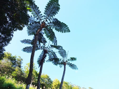 何億年も昔には、恐竜の餌だったと言われるヒカゲヘゴも亜熱帯のムードを醸し出してくれます。最大で15mにもなると言われ、まっすぐに伸びる姿が特徴的。幹の丸い痕跡は、葉が落ちたあとで、これを見て樹齢がわかるそうです。