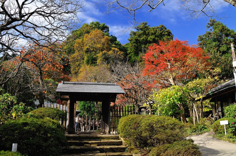 鎌倉で一番遅く紅葉が楽しめると言われている、瑞泉寺。その他の寺院に比べてアクセスがよくないため、紅葉の時期でも混むことはなく、ゆっくりと楽しむことができます。とくに山門付近の紅葉は見事。瑞泉寺のカエデは大木のため、より一層豪快な紅葉が、目を楽しませてくれます。瑞泉寺の辺り一帯は「紅葉ヶ谷」と呼ばれており、周辺の紅葉が織りなす風景も見逃せません。