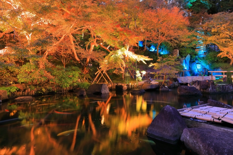 鎌倉で唯一、紅葉のライトアップを行っているのが、長谷寺です。ライトアップは例年11月下旬から12月上旬にかけて行われ、この期間は閉山時間を延長。ライトが点灯される夕暮れ時から混み始めるため、明るいうちから訪れて、うつりゆく様を楽しむのがオススメです。