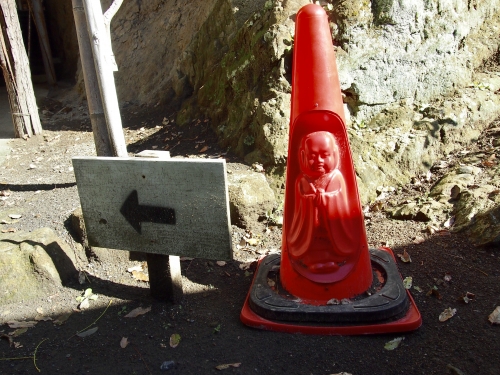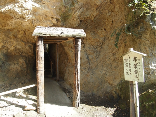 浄智寺の名物、布袋さんに会いに行きましょう。岩山を掘った隧道(ずいどう)を通ります。