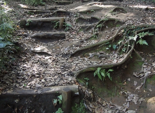階段を上っていくと、一気に山道に。緑がとっても気持ちがいいです。
