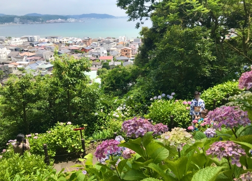 観音山の斜面に築かれているので、展望スポットとしても人気です。鎌倉の街並みと相模湾を一望でき、特に紫陽花で彩られる季節は美しいです。