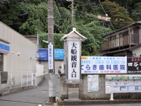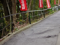写真:えいぶゆう/TossyPhoto 大船観音寺の入り口 |  写真:えいぶゆう/TossyPhoto 竹の根に持ち上げられたアスファルト |  写真:えいぶゆう/TossyPhoto チケットとリーフレット。もちろん観音様がいらっしゃいます。 |