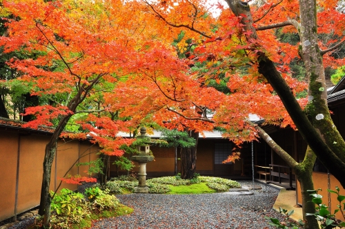 紫陽花の咲く季節しか楽しめないの?というとそんなわけではありません。明月院の本堂にある円窓と、そこから見える後庭園の美しさでよく知られており、写真で見たことがあるという人も多いのではないでしょうか。とくに秋の紅葉の時期には円窓から真っ赤に色づいた紅葉をのぞむことができます。