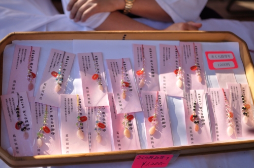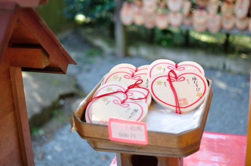 ハートの形をした「縁結び絵馬」や、綺麗な色をしたサクラ貝が良縁をよぶ「さくら貝御守り」など縁結び神社らしい絵馬やお守りが揃っています。「さくら貝御守り」は鎌倉の海岸でとれたサクラ貝を奉製したお守りで、当然のことながら、一点一点、色合い、模様、大きさが異なります。
