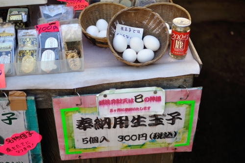 さて、「銭洗い」には、いくつかの方法あります。無料のざるにお金を乗せ、水を掛けて銭を洗う簡単なものから、「100円の参拝キット(ロウソク、線香、ざる)」を使ってお参りするもの、さらには「100円の参拝キット」に加えて神様に卵をお供えするものまでありますよ。
