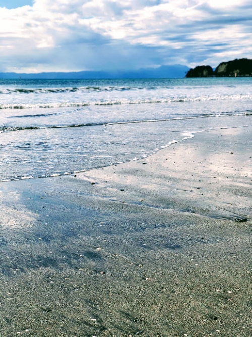 砂浜をよ~く探してみると、ほら!教えていただいた通り、可愛らしい桜貝を見つけることができました。浜辺でしばしのんびりと過ごすのも贅沢な時間です☆
