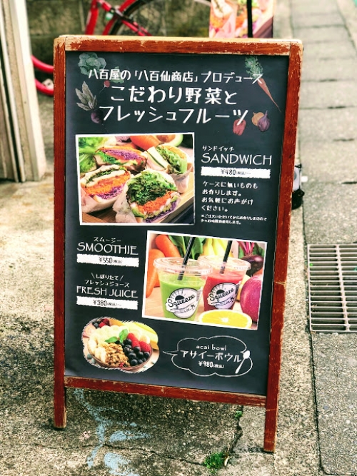 「Squeeze」は、材木座にあるコールドプレスジュースとサンドウィッチのお店。コールドプレスジュースとは、新鮮な野菜や果物を専用のマシーンでゆっくりとプレスし、素材の味を抽出したもの。このお店がもともと八百屋だったこともあり、野菜をふんだんに使ったジュースやサンドウィッチなどを提供するようになったのだとか。
