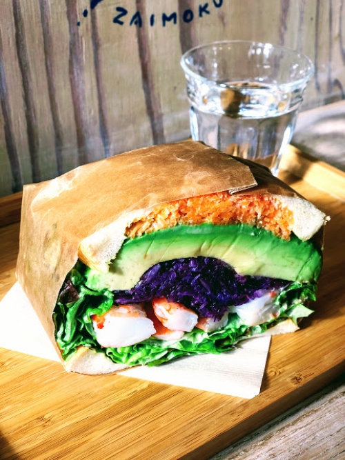 ちなみに右上の写真は「えびアボカドサンド(640円)」。見てください!この野菜の量。これでもかというくらい入っていて、うれしい反面、どこから食べたらいいのか正直悩みます(笑)。