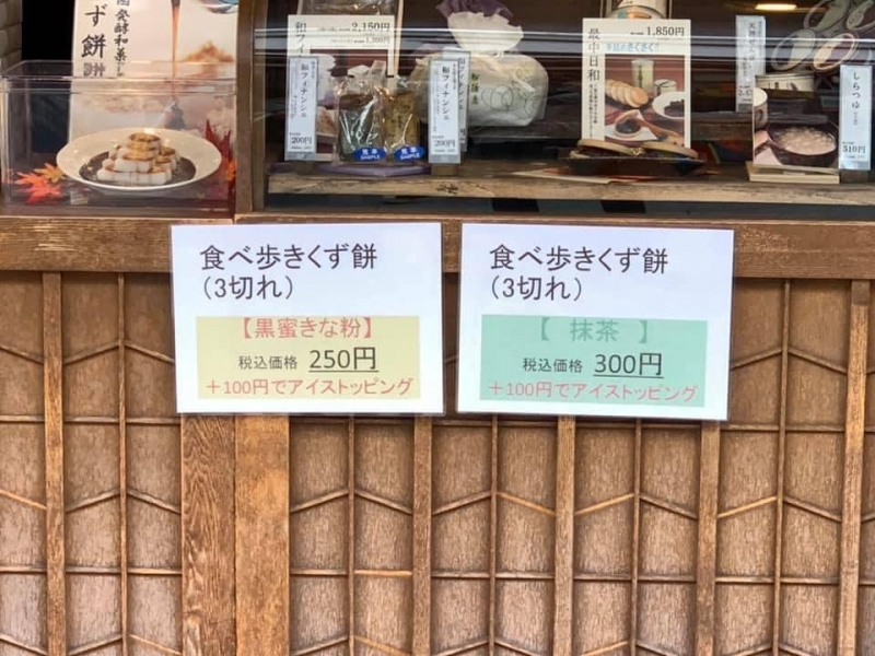 こちらではお土産用のほかに、カップで提供してくれる食べ歩きくず餅も販売されています!