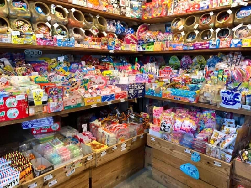 お店に入ると、種類豊富な駄菓子がずらり!数十円から買える駄菓子がいっぱいあり、気軽にあれこれと買うことができます。