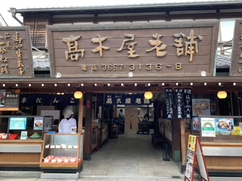続いてご紹介するのは、参道をはさんで販売店と喫茶店を構える高木屋老舗の名物、食べ歩きだんご!
