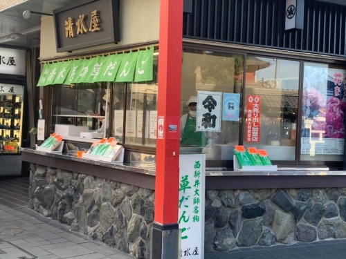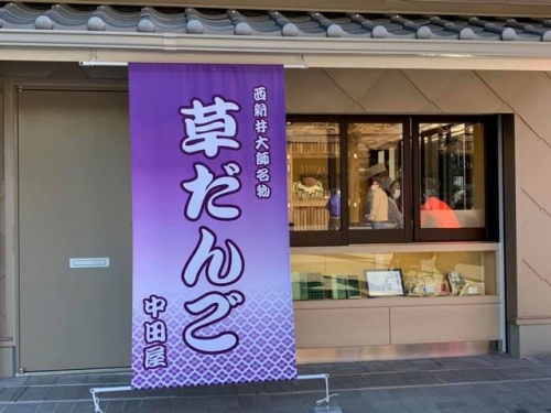 まずはじめにご紹介するのは、西新井大師名物として知られている「草だんご」です!山門の前には「清水屋」と「中田屋」の2つの有名な草だんごのお店が向かい合わせに建っています。