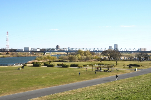 京成金町線の柴又駅から、徒歩で約15分。矢切の渡しの乗船場がある江戸川の河川敷一帯には、カフェやベンチなどがある柴又公園や、遊具や公衆トイレがあるレクリエーション場、野球グランド、広い駐車場などがあります。