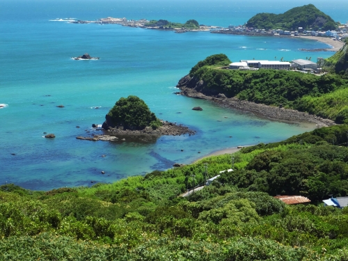 この鴨川松島を見るのにうってつけなのが、「魚見塚展望台(うおみづか)」です。漁師さんたちが、ここから魚群を見張っていたということから名付けられた魚見塚。道は狭いですが、展望台の直前の階段まで車で行くことができます。数台程度の駐車場やトイレもあります。この展望台に上って海を眺めてみると、鴨川松島の島々を眺めることができます。