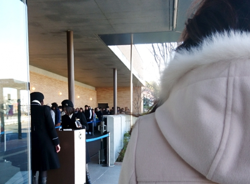 ミュージアム前で行われる入館手続きは屋外で行われ、その指定時間帯のお客さんが全員対象のため、長い列ができます。
