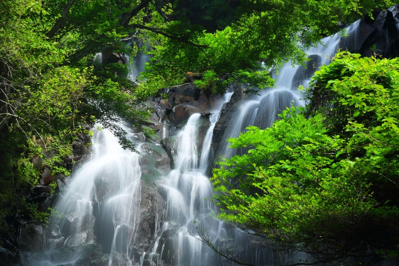 落差69mの一の滝までは遊歩道が整備されており、滝に近づくにつれて清涼感が増し、マイナスイオンたっぷり!2020年には観瀑台が新設され、地上40mの高さから一の滝を見下ろすことができます。