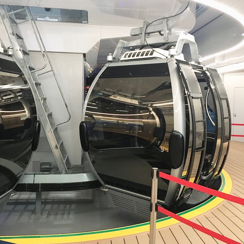 桜木町駅から乗るのは「キャビン」と呼ばれるゴンドラ。バリアフリーに対応しているほか、空気循環も良く、冷暖房機能も完備しているので、快適な環境で空中散歩を楽しめます。